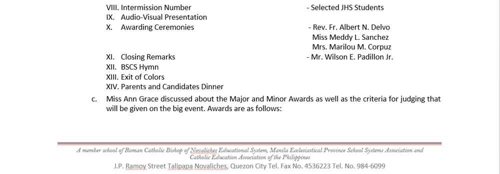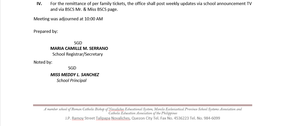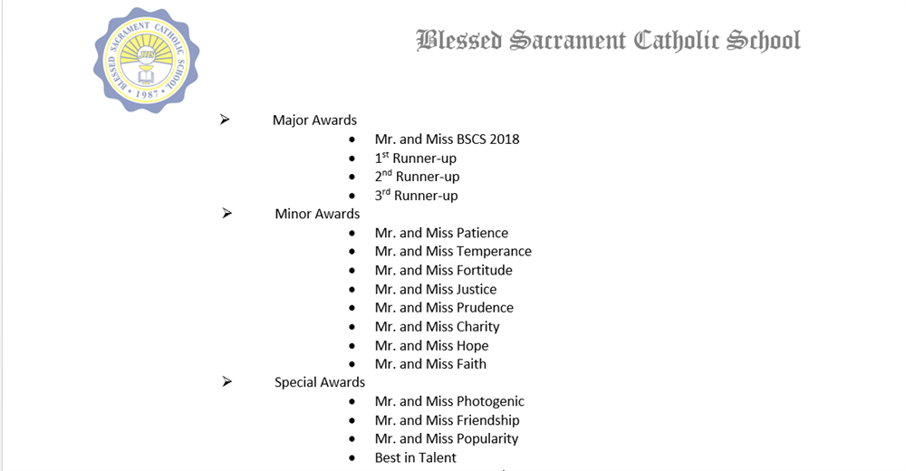 Blessed Sacrament Catholic School Address: J.P. Ramoy St., Talipapa Novaliches, Quezon City