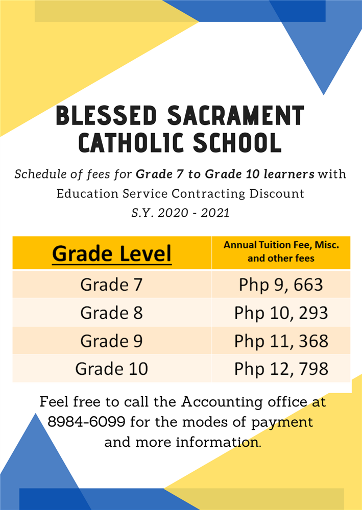 Home > Advisories > SCHEDULE OF FEES FOR ESC AND SHS VP DISCOUNTS