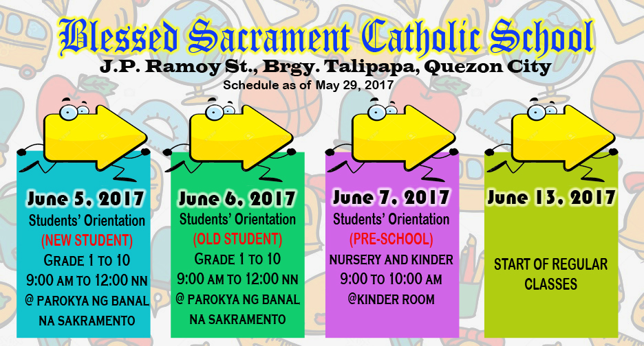 Blessed Sacrament Catholic School Address: J.P. Ramoy St., Talipapa Novaliches, Quezon City